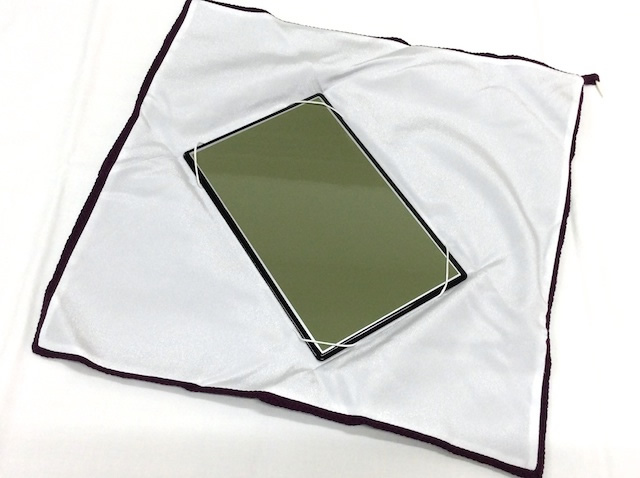 結婚祝辞等の祝儀や葬儀の折の香典、また、その他いろいろの贈りものは、ふくさに包むのが本当で、この台付ふくさは大変便利で皆様に喜ばれています。
